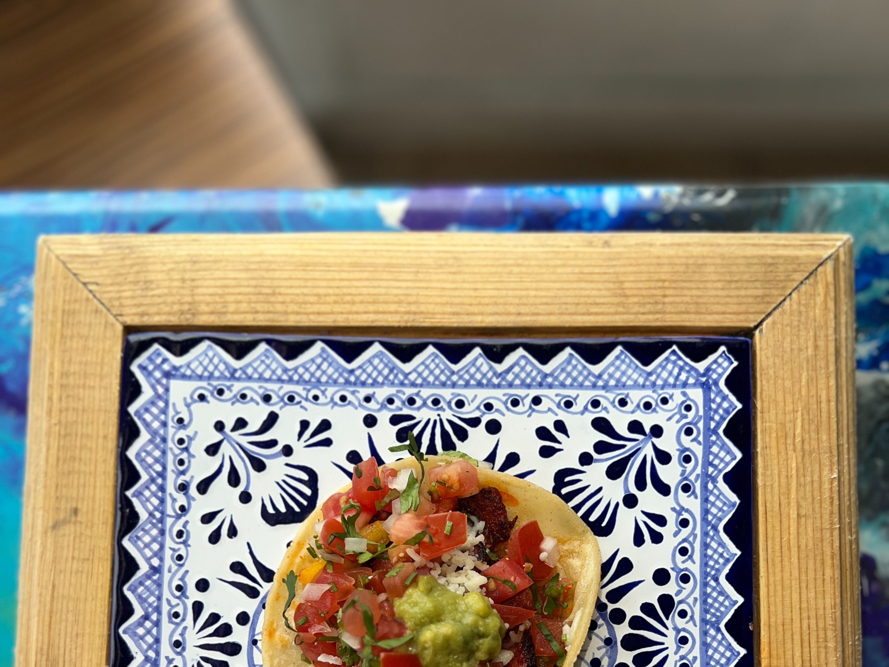 Marinated pork in adobo spices with a hint of pineapple. Bold and iconic Mexican flavor. Corn tortilla taco loaded with melted cheese, guacamole, pico de gallo, and chipotle cream on the side A flavor-packed, hearty bite.