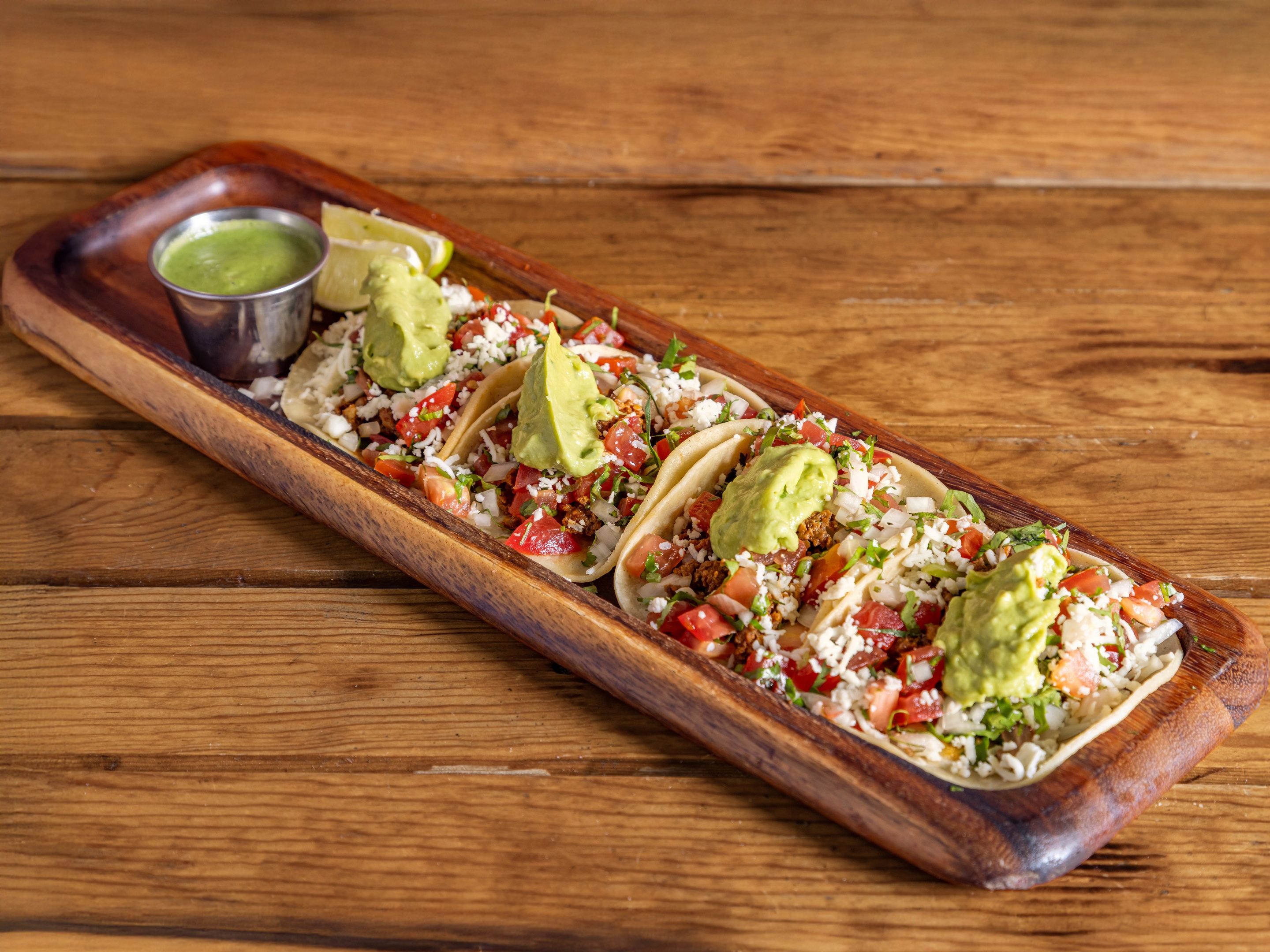 Grilled cactus paddles with a fresh, tangy bite. A traditional and satisfying vegetarian taco. Corn tortilla taco loaded with melted cheese, guacamole, pico de gallo, and chipotle cream on the side A flavor-packed, hearty bite.